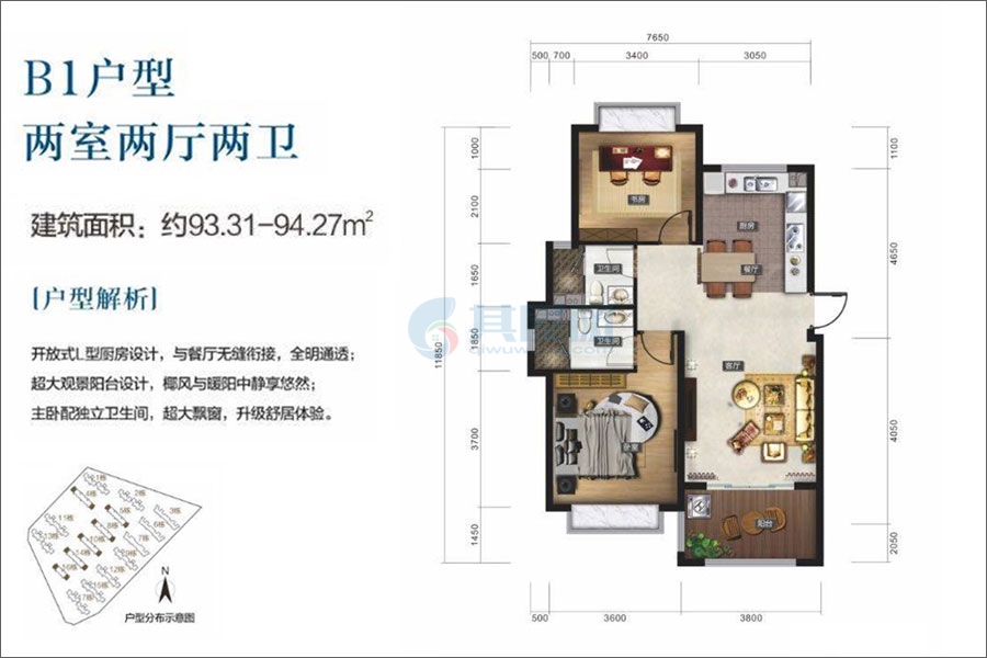 陵水·清水湾智汇城,A组团14#热销中,均价2.45万,93平,板式两房,一梯两户,一次性亨99折优惠