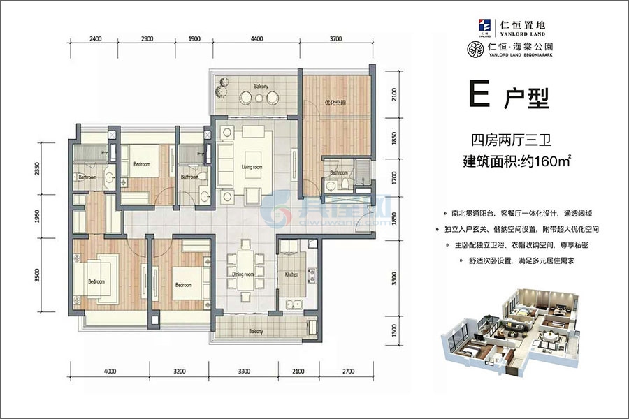 仁恒海棠公园二期栋楼,2梯3户到2梯4户设计,建面约129-167平精装住宅,均价25000元/㎡。