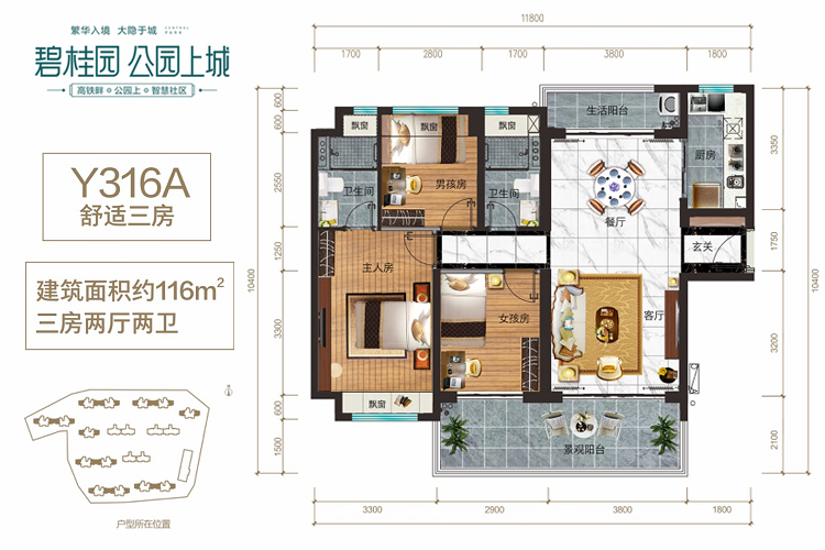 海口碧桂园公园上城洋房在售,建面为105-177平米三至四房,碧桂园公园上城价格为15600元/平