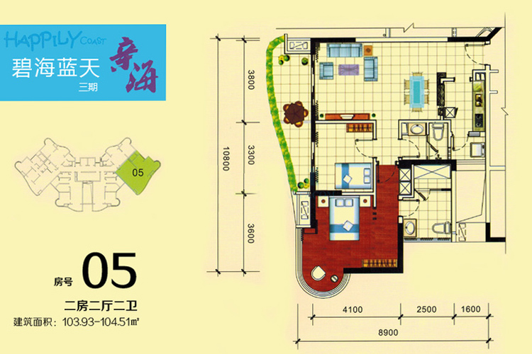 05户型 2房2厅1厨1卫 103.93-104.51㎡