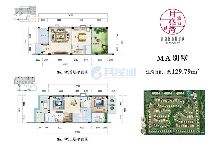 MA别墅约129.79平米(建筑面积)两房两厅(建筑面积:129.79㎡)