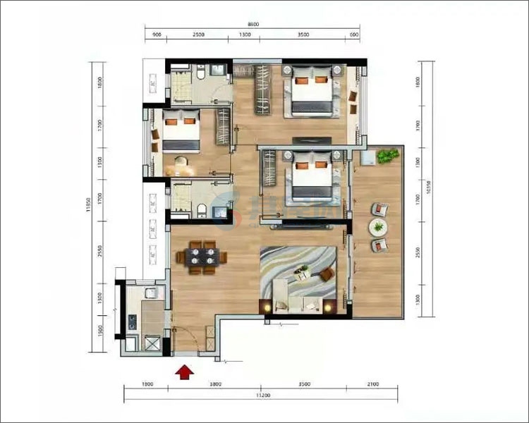 8#B户型-建面约111㎡-3室2厅2卫1厨